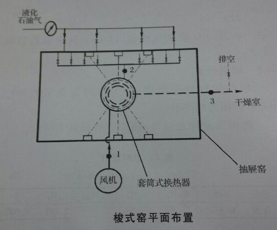 位于回轉(zhuǎn)窯冷空氣管道位置1開設(shè)Φ8毫米的測試孔,用標(biāo)準(zhǔn)畢托管測量助燃空氣流量,查看鼓風(fēng)機(jī)頻率顯示。預(yù)熱空氣管道2開設(shè)Φ8毫米的測試孔,用鉑電阻溫度計量空氣預(yù)熱溫度。而回轉(zhuǎn)窯的中溫?zé)煔夤艿牢恢?開設(shè)兩個Φ8毫米的測試孔,用鉑電阻溫度計測量煙氣離窯溫度,用testo360煙氣成分檢測儀在線監(jiān)測煙氣內(nèi)的一氧化碳和氧氣濃度。用鉑電阻溫度計測量車間環(huán)境溫度;剞D(zhuǎn)窯的燃料供應(yīng)管上安裝渦街流量計測試液化石油氣的具體流量,安裝壓力表對液化石油氣的壓力進(jìn)行測量。窯溫借助抽屜窯配套的溫度自動檢測及顯示系統(tǒng)測試。